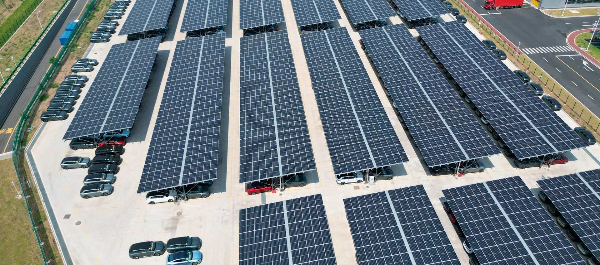 太阳能车棚兼具停车和发电功能。